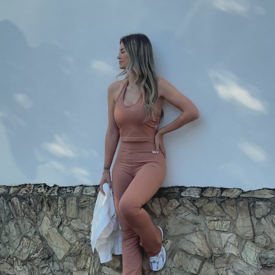 A Legging Flare Avelã traz um visual suave e sofisticado que valoriza sem esforço.