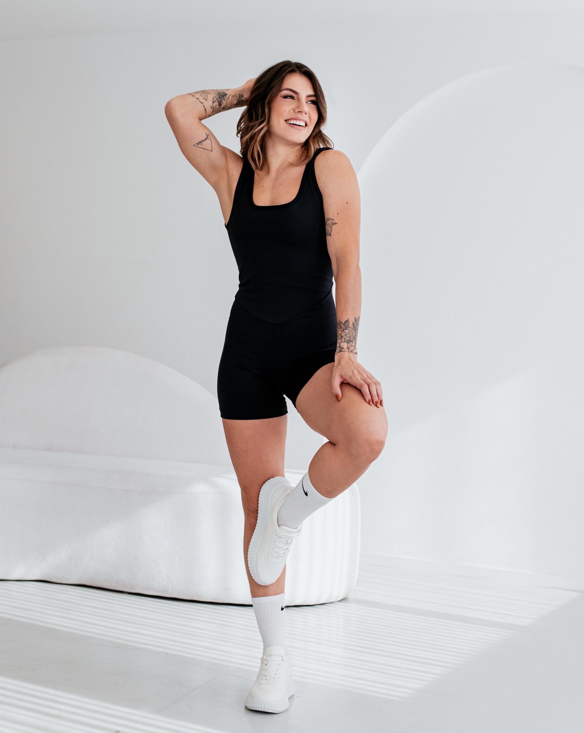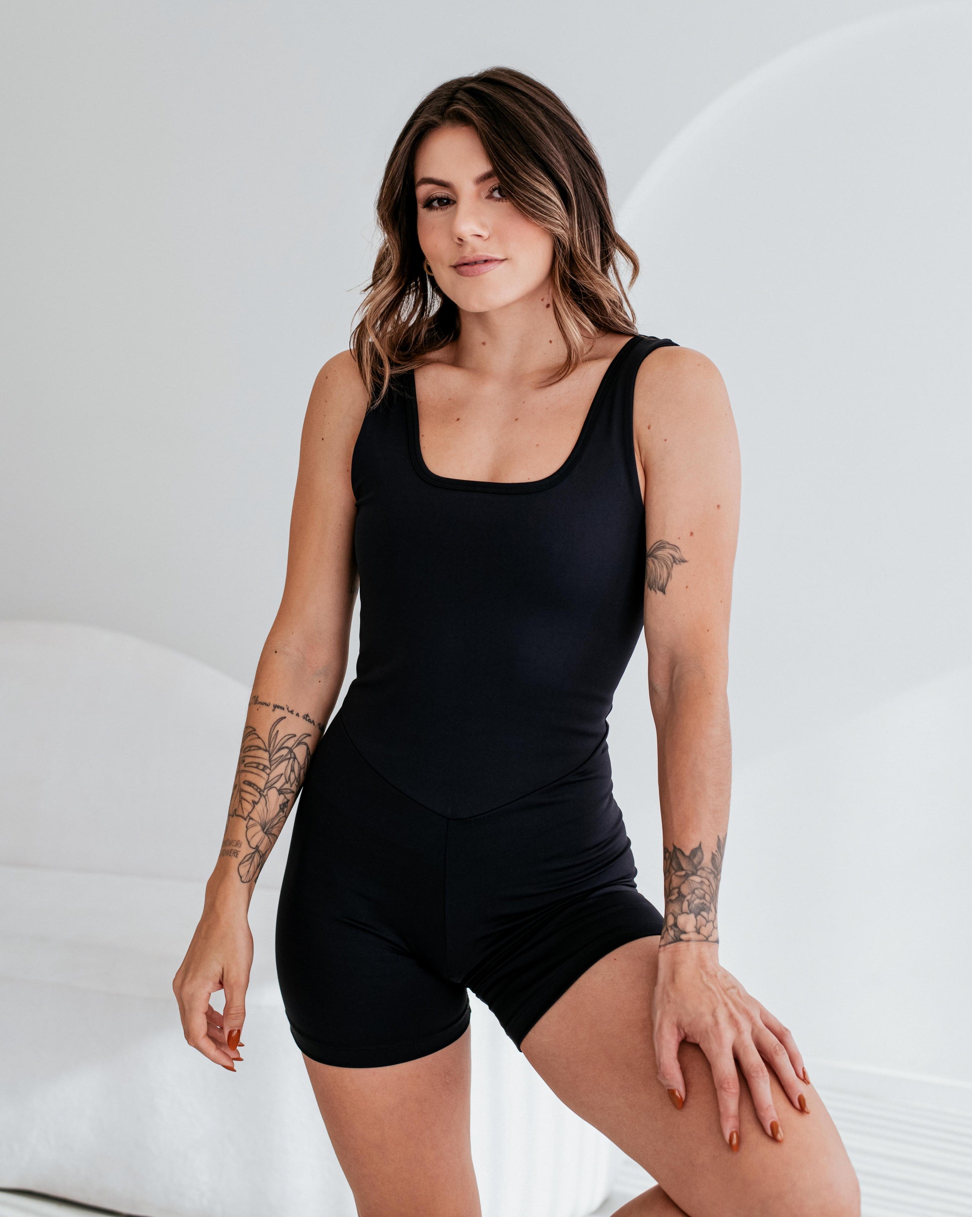 A peça mais moderna e versátil chegou na moouve. Um macaquinho básico, desing clean, modelagem impecável. Desenhado para valorizar as suas curvas e ao mesmo tempo te permitir liberdade de movimentos durante os teus exercícios e ainda ser a peça coringa no teu guarda roupas para compor looks casuais modernos e elegantes.