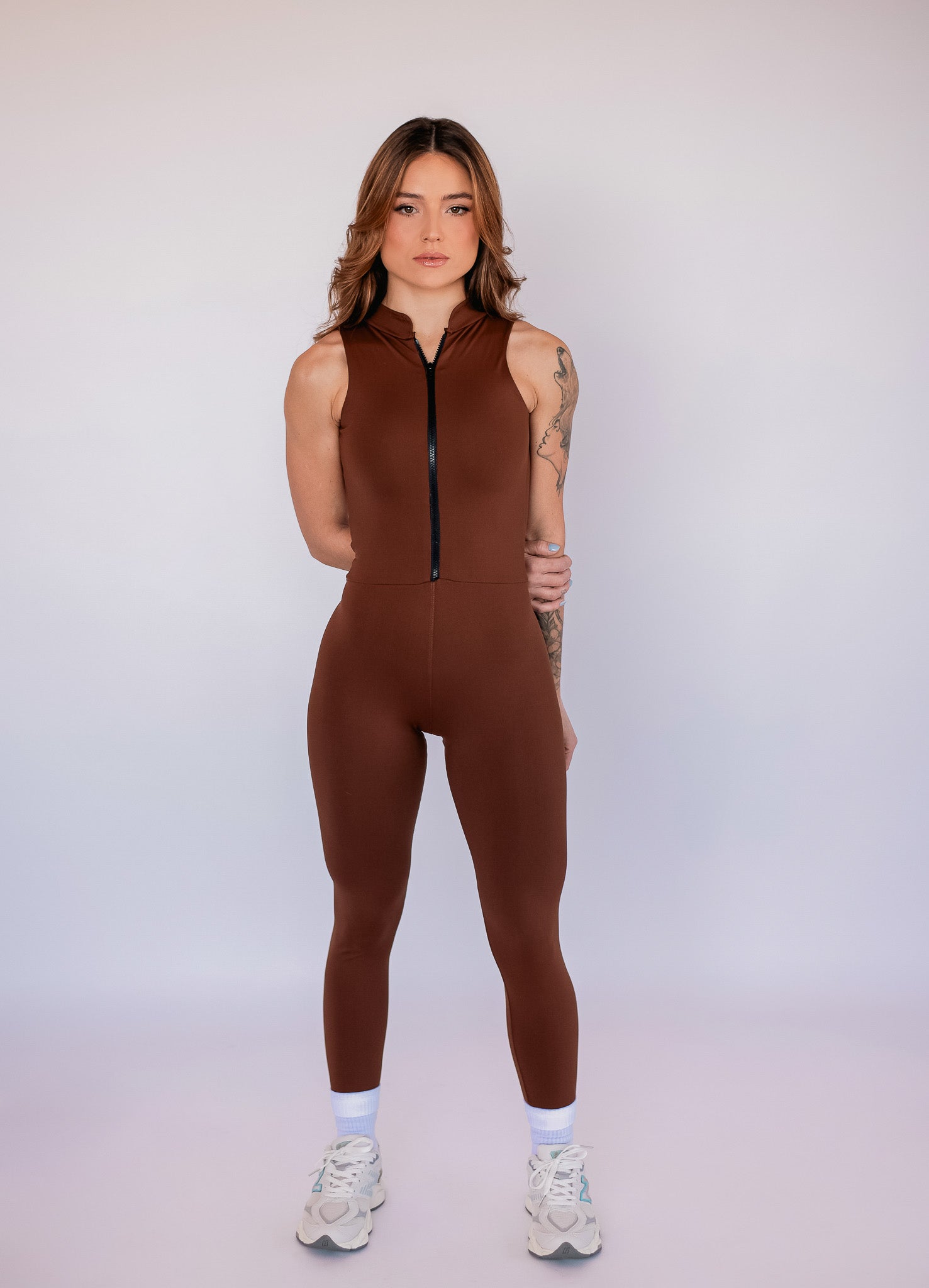 A cor coffee foi escolhida a dedo por Fê Staats para traduzir intensidade, elegância e aconchego. Um tom sofisticado e versátil, que combina com você em qualquer fase. Esse macaquinho é parte de uma coleção feita por mulheres reais, pra mulheres reais — que sentem, lutam, amam, se movem.