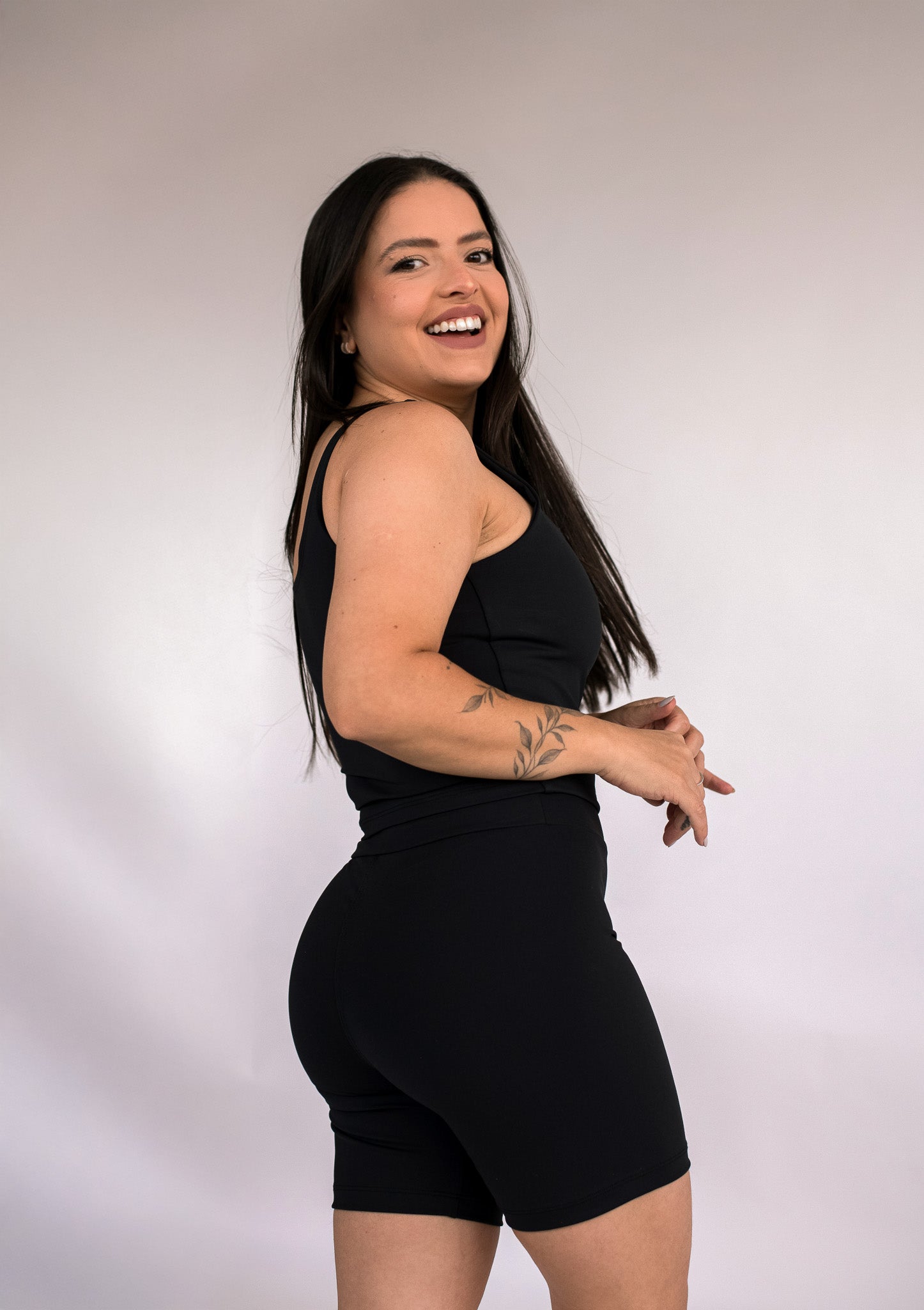 O Short Basic Black Alongado oferece segurança sem limitar seus movimentos.